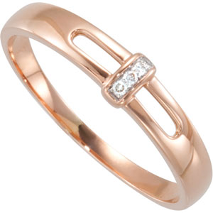 .015 Carat TW Diamond Ring with Rhodium Plating. 14K Rose. .015 Carat TW. Set with 3ea 0.005 Ct -- 1.00 MM, I1/ H-I Round Diamond Round.