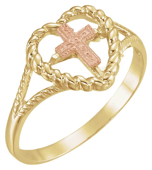 14KY Rose Cross Heart Rope Ring Ref 111550