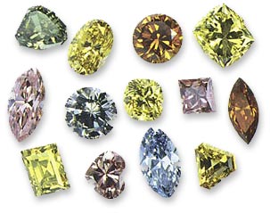 Diamonds in the normal color range are graded by their relative lack of color. A diamond that is said to have "fine color" has little or no visible coloration. The less color, the higher the value. Diamonds outside the normal color range are called fancy-colored and come in about any color you can imagine.