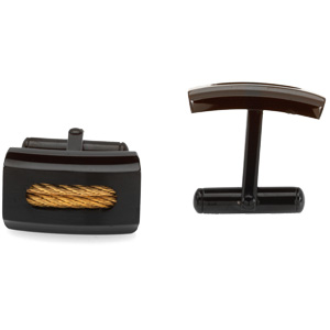 Black Ion Plated Stainless Cufflinks with Yellow Ion Plated Cable Ref 188036