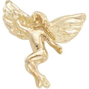 Dancing Angel Lapel Pin | 12 x 13 mm. Available in 14K Yellow Gold or 14K White Gold.
