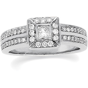 Diamond Engagement Ring | 1/2 Carat TW Side Diamonds Included. 14K White Gold.