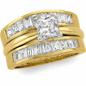 Diamond Ring Guard | 1-1/2 Carat TW Side Diamonds. Available in 14K Yellow Gold, 14K White Gold, 18K Yellow Gold, or Platinum. Shown with 4-Prong Solitaire Ring for Princess-Cut Stone SKU 15720095, which is sold separately. Solitaire and center stone sold separately. Ref. Mtg. 10457.