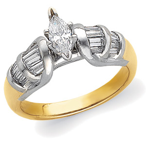Diamond Semi Set Engagement Ring | 1/2 Carat TW Baguette Side Diamonds. Center stone sold separately.