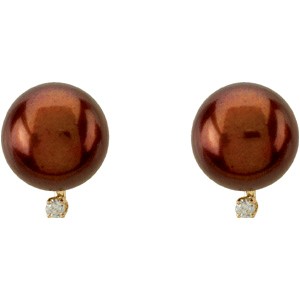 Freshwater Chocolate Pearl & Diamond Earrings. .04 Carat TW. 14K Yellow Gold. Set with 2ea 01.70 MM (01.56 - 01.80) Full Cut, I2 ROUND FULL CUT G-H GENUINE DIAMOND