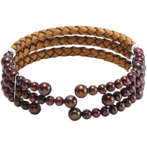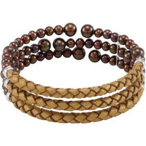 Freshwater Cultured Copper Color Pearl and Leather Cuff Bracelet Ref 548373