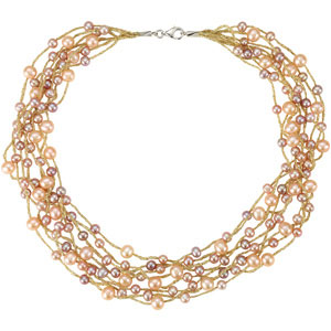 Freshwater Cultured Multi-colored Pearl 18" Necklace. Sterling Silver. 5-5.5MM/6-6.5MM. 18 inches.