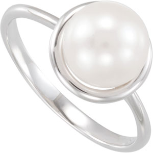 Freshwater Cultured Pearl Ring. Sterling Silver. 08.50 - 09.00MM Pearl.