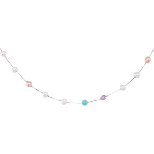 Freshwater Multi Color Pearl and Genuine Amazonite Necklace Ref 634397