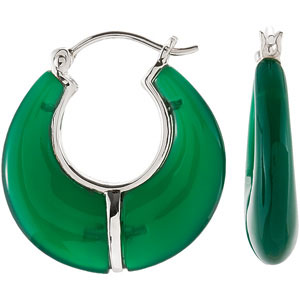 Genuine Dyed Green Agate Hoop Earrings Ref 661166