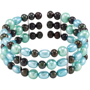 Multi-color Freshwater Cultured Pearl Cuff Bracelet. Sterling Silver. 5.5-6M/6-6.5M/7-7.5M Pearls. 7.5 inches.