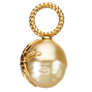 Paspaley South Sea Cultured Pearl Pendant with Citrine Starfish | 11 mm Circle / 1.25 mm / 1.5 mm. 14K Yellow Gold. Set with 1ea 11.00 MM Fashion Undrilled, Cultured Pearl South Sea - Circle Undrilled Paspaley South Sea; Fashion Quality; White.
