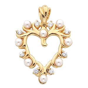 Pearl Heart Shaped Pendant | 3 mm Pearl | 1/4 Carat TW