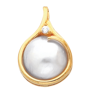 Pendant for 15 mm Mabe Pearl with Accent 8 pttw dia.; Design for 1 x 15 mm Mabe Pearl | .08 Carat TW. The price quoted is for the mounting and the side stone. The center Mabe pearl is sold separately.