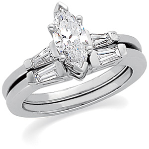 1/3 Carat TW Engagement Ring set with 2ea 04.25x02.50x01.50 MM Step, VS TAPERED BAGUETTE STEP GHI GENUINE DIAMOND