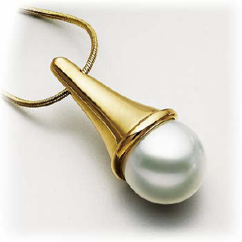 South Sea Cultured Pearl Pendant | 12 mm Fashion Oval. Chain sold separately. Ref 82370. 18K Yellow Gold.