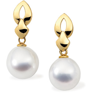 South Sea Pearl Earrings | 11 mm Fine Oval. 18K Yellow Gold. Set with 2ea 11.00 MM Fine Undrilled, Cultured Pearl South Sea - Oval Undrilled Paspaley South Sea Pair; Fine Quality; White.