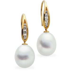South Sea Cultured Pearl & Diamond Earrings | 12 mm Fine | 1/3 Carat TW. Available in 18K Yellow Gold or 18K Palladium White Gold. Set with 2ea 01.70 MM (01.56 - 01.80) Full Cut, VS ROUND FULL CUT G-H GENUINE DIAMOND, 2ea 02.20 MM (02.11 - 02.23) Full Cut, VS ROUND FULL CUT G-H GENUINE DIAMOND, 2ea 02.40 MM (02.24 - 02.43) Full Cut, VS ROUND FULL CUT G-H GENUINE DIAMOND, 2ea 02.50 MM (02.44 - 02.50) Full Cut, VS ROUND FULL CUT G-H GENUINE DIAMOND & 2ea 12.00 MM Fine Undrilled, Cultured Pearl South Sea - Drop Undrilled Paspaley South Sea Pair; Fine Quality; White.