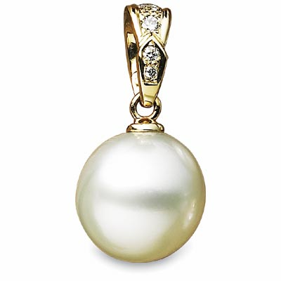 South Sea Cultured Pearl & Diamond Pendant | 12 mm Fine | 1/10 Carat TW. 18K Yellow Gold. Set with 1ea 01.20 MM (01.16 - 01.23) Full Cut, VS ROUND FULL CUT G-H GENUINE DIAMOND, 1ea 01.50 MM (01.41 - 01.55) Full Cut, VS ROUND FULL CUT G-H GENUINE DIAMOND, 1ea 02.00 MM (01.89 - 02.10) Full Cut, VS ROUND FULL CUT G-H GENUINE DIAMOND, 1ea 02.20 MM (02.11 - 02.23) Full Cut, VS ROUND FULL CUT G-H GENUINE DIAMOND & 1ea 12 mm Fine Pearl.