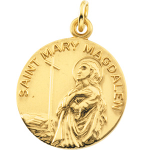 St. Mary Magdalen Medal | 18 mm. St. Mary Magdalen is the patron saint of penitents and perfumers. Available in 14K Yellow Gold.