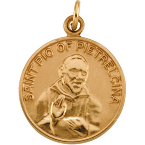 St. Pio Medal | 18 mm. Available in 14K Yellow Gold.