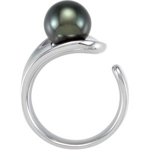 Tahitian Cultured Pearl Open Shank Ring. Sterling Silver. Ref. 6440. Set with 1ea 9-10 MM, Round Gemstone Tahitian Pearl.