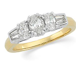 Comes set with 1ea 06.00x04.00 MM Faceted SI2/I1 OVAL FACETED GHI GENUINE DIAMOND, 2ea 04.50x03.50 MM Faceted SI2/I1 OVAL FACETED GHI GENUINE DIAMOND, 4ea 03.50x01.25x01.00 MM Step SI2/I1 TAPERED BAGUETTE STEP GHI GENUINE DIAMOND.