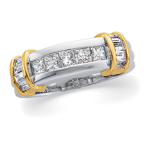 Two Tone Diamond Wedding Band | 3/4 Carat TW Princess Cut & Baguette Diamonds